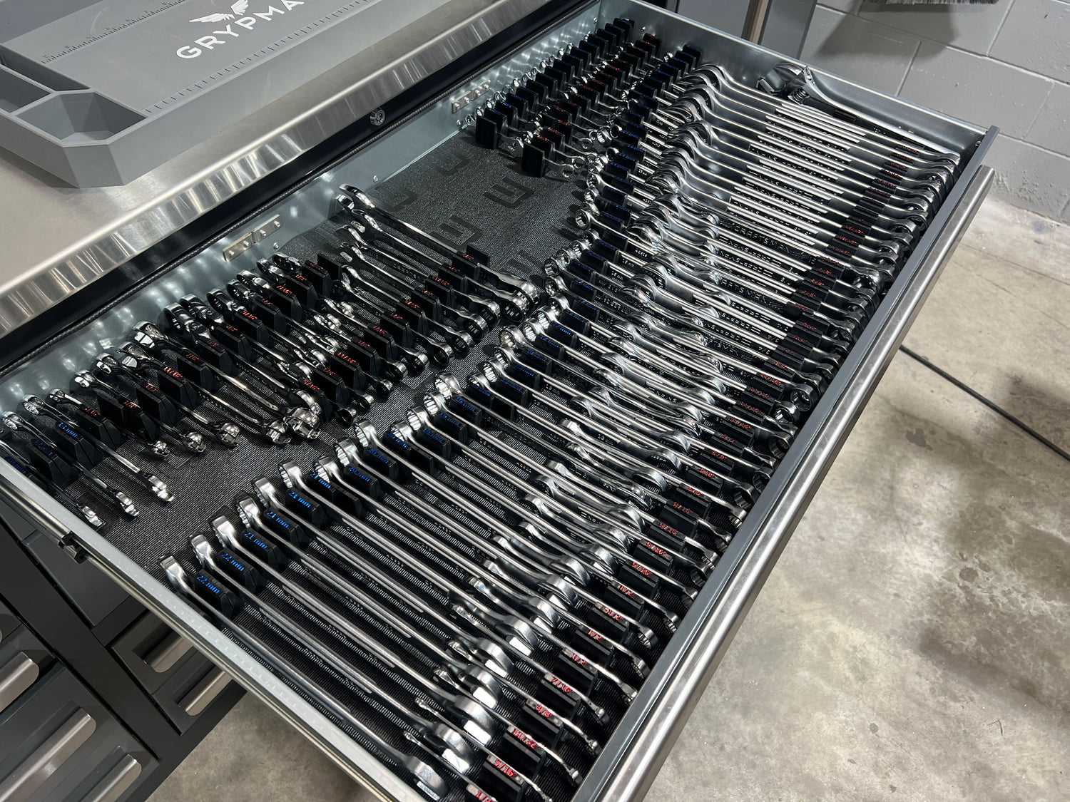 • Vertical wrench widgets - depending on the brand they can hold micro wrenches or 5/32” or 4mm up to 2” or 52mm.